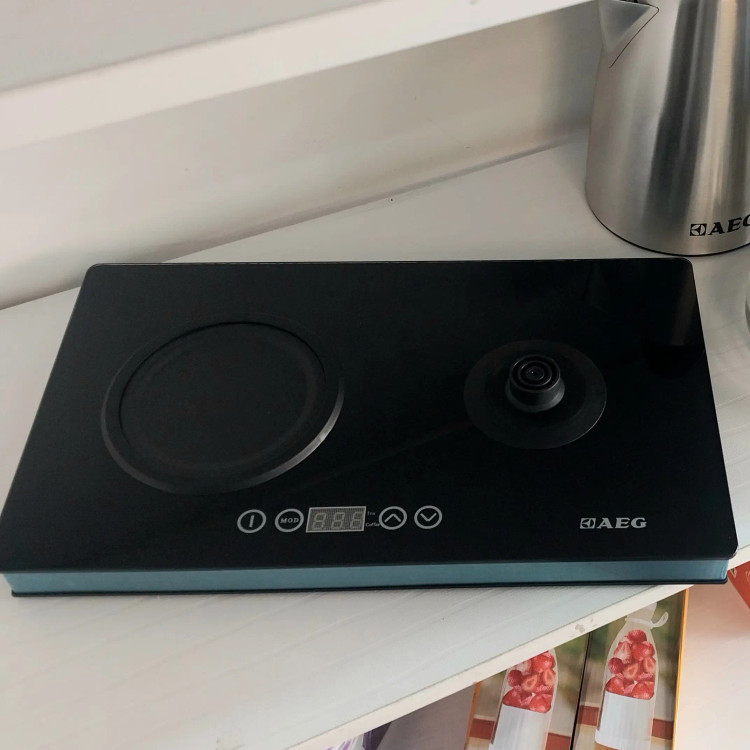چایساز AEG مدل AE-2717 صفحه دیجیتال لمسی تواک مصرفی ۱۵۰۰ وات تنظیم درجه حرارت دارای گرم کن جهت دم آوری چای و قطع کن جنس کتری استیل و قوری پیرکس گنجایش کتری ۱\u002F۸ لیتر و قوری یک لیتر