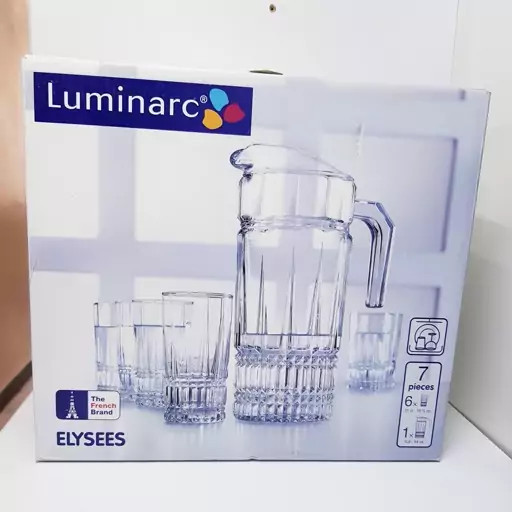 پارچ و لیوان لومینارک مدل الیزه اصلی 7 پارچه ساخت امارات سری گلد فرنس F2565E LUMINARC ELYSEES