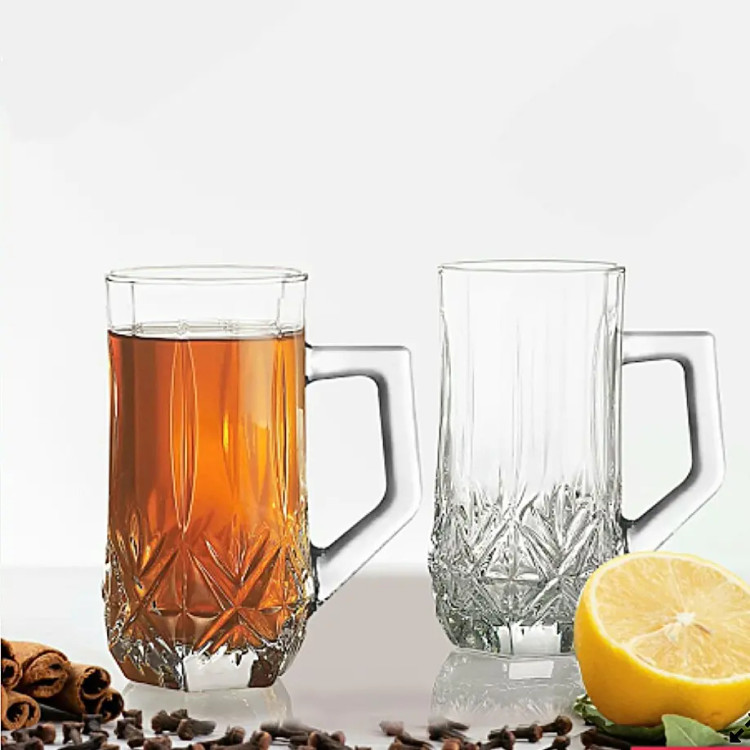 استکان لومینارک مدل برایتون حک شده اصلی دسته دار بسته 6 عددی ساخت امارات مدل گلد فرنس F2565E LUMINARC BRIGHTON
