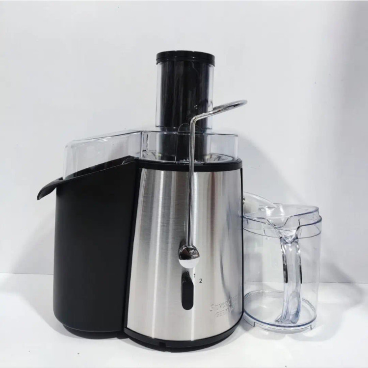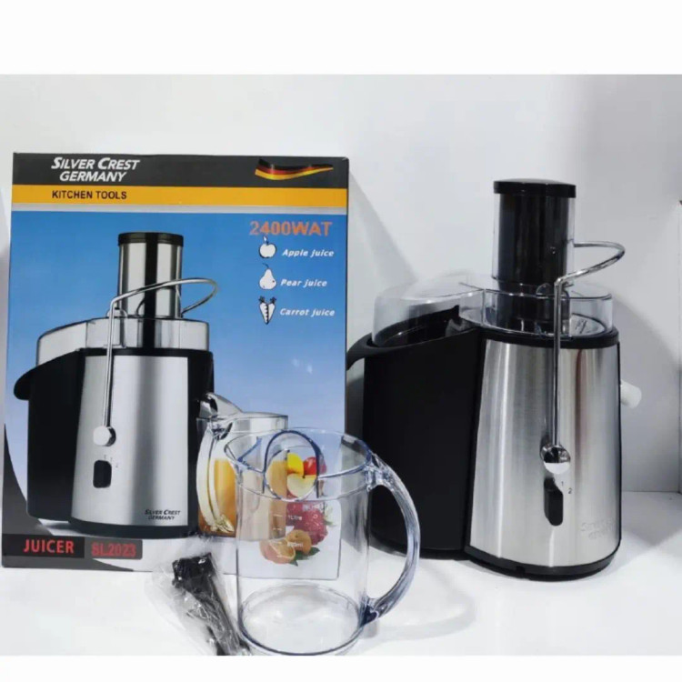 آبمیوه گیری تک کاره سیلورکرست ساخت آلمان مدل SL 2023 توان مصرفی ۲۴۰۰ وات دارای کلید تنطیم دو سرعته دارای پارچ یا مخزن آبمیوه گنجایش پارچ آبمیوه گیر : ۱ لیتر گنجایش مخزن تفاله گیر : ۲ لیتر