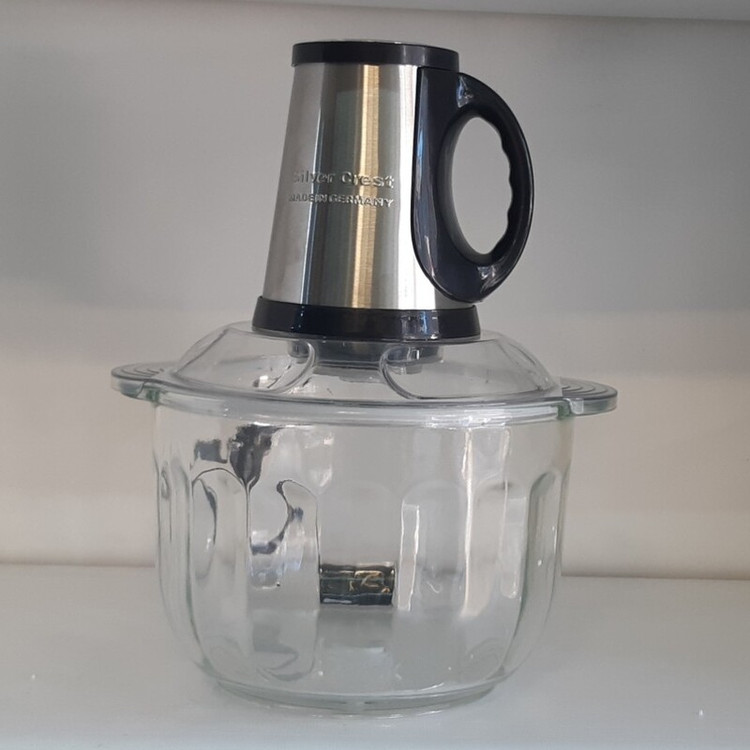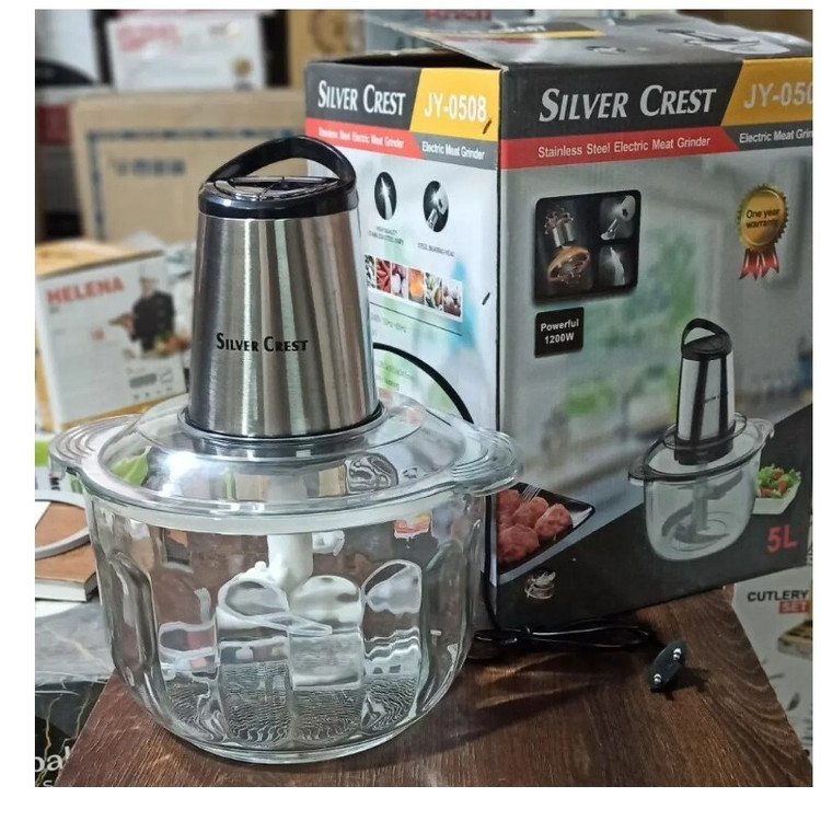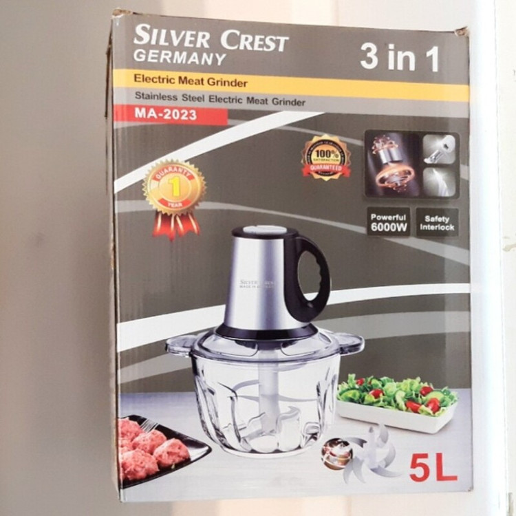 خردکن سیلور کرست برند Silver crest مدل 2023 کاسه پیرکس گنجایش 5 لیتر جنس تیغه استیل ضد زنگ و مقاوم 1 عدد تیغ 5 تایی پیچی