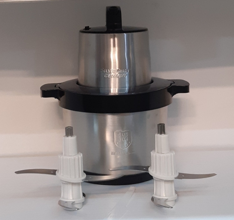 خردکن سیلور کرست برند Silver crest مدل 2023 کاسه پیرکس گنجایش 5 لیتر جنس تیغه استیل ضد زنگ و مقاوم 1 عدد تیغ 5 تایی پیچی