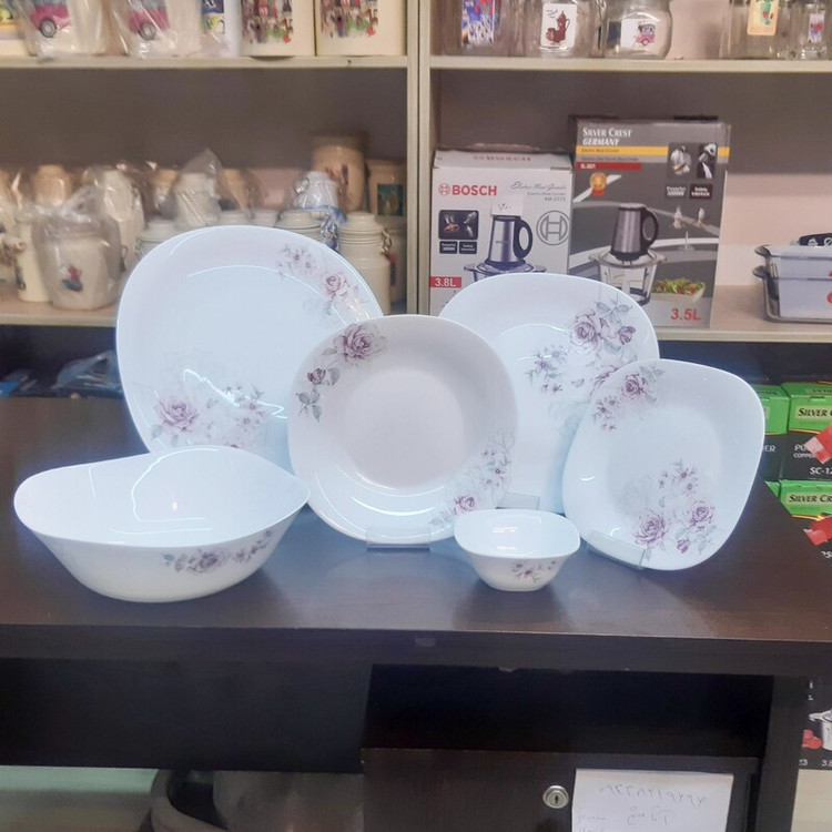 سرویس غذاخوری آرکوپال دینو 26 پارچه مربعی و شش نفره 6عدد پیشدستی 6 عدد پلو خوری 6 عدد خورش خوری 6عدد کاسه پیاله یک عدد دیس یک عدد کاسه بزرگ سالاد قابلیت استفاده در ماکروویو قابلیت شستشو در ماشین ظرفشویی