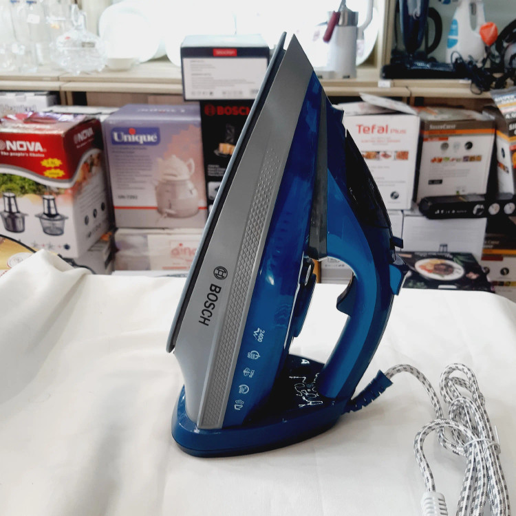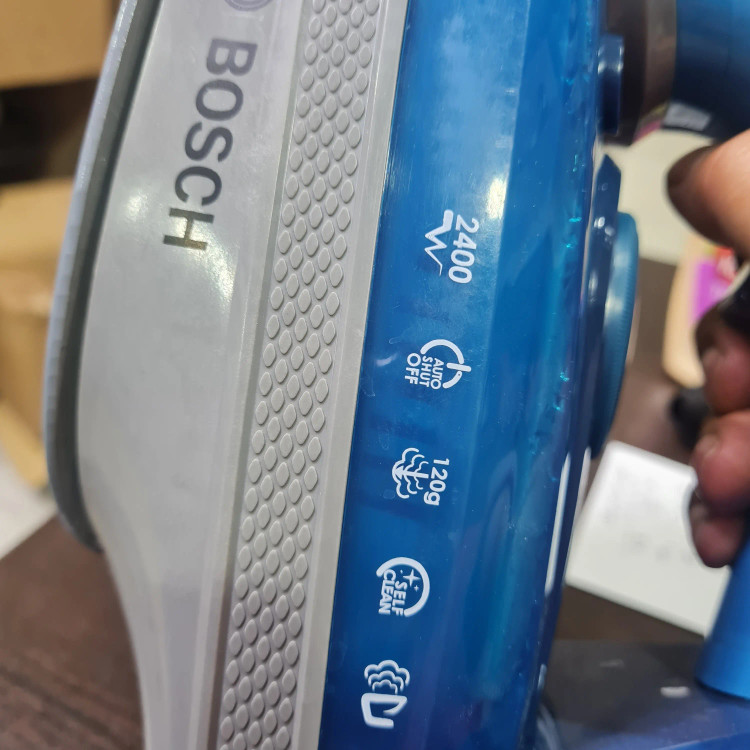 اتو بخار بوش با گارانتی 1 ساله 2400وات، ساله کف سرامیک با دکمه تخلیه رسوب. خود خاموش شونده. بخار 120 گرم.و بخاردهی ایستاده مدل 2323