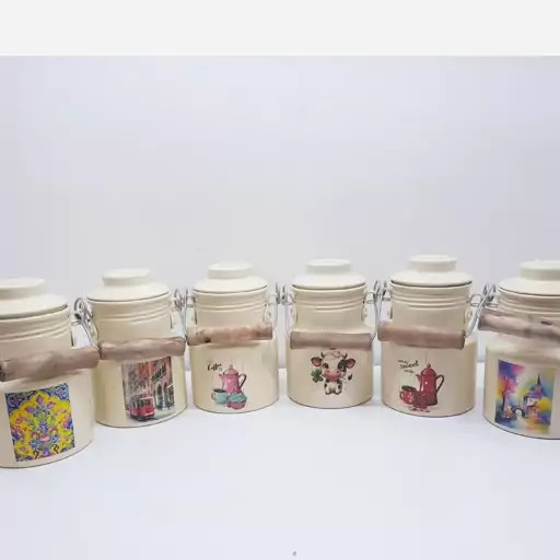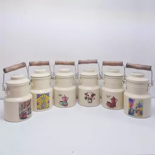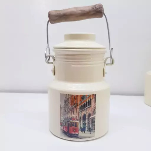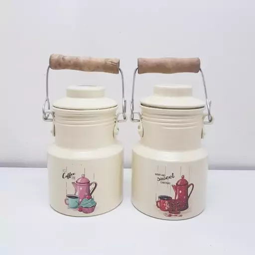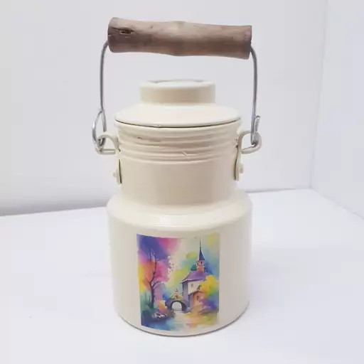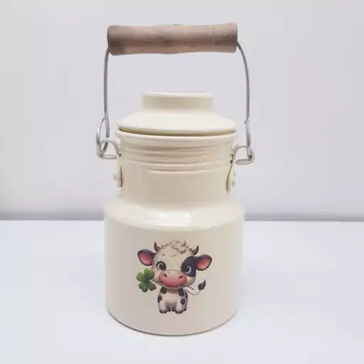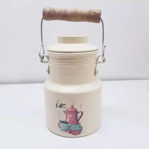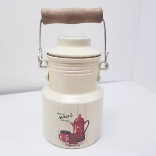 بانکه و سطل شیر و روغن 400 میلی لیتر روحی رنگ کوره دسته چوبی یکتا بوش