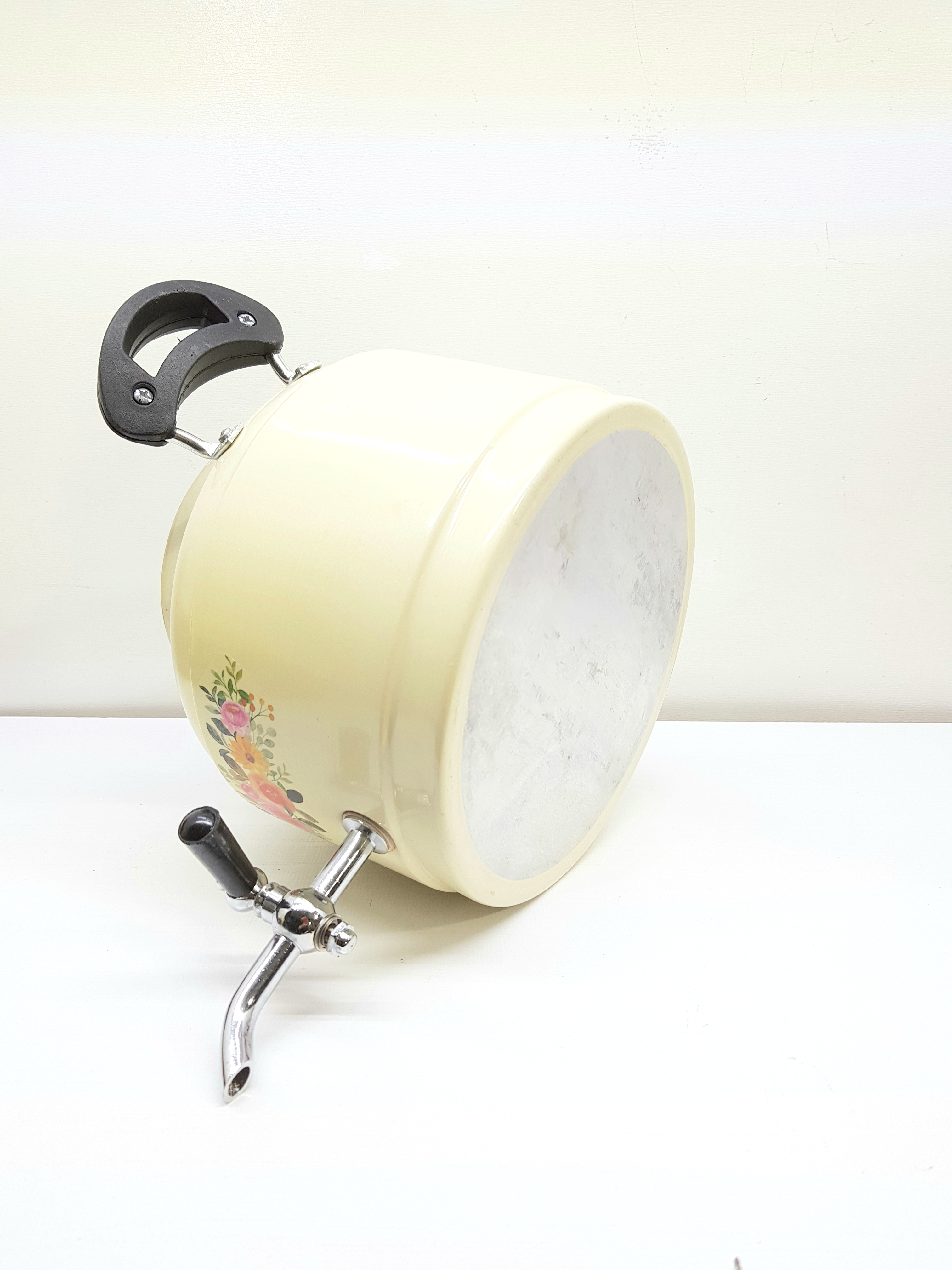 یک انتخاب مطمئن برای آشپزخانهی خانه: بدنه روی/روحی (آهنربا نگیر)، پوشش کِرِم کورهای مقاوم، سازگار با شعله مستقیم آتش و اجاق گازی؛ با شیر توپی برنجی فلزی قابل تعویض برای استفادهای تمیز، ایمن و طولانیمدت.